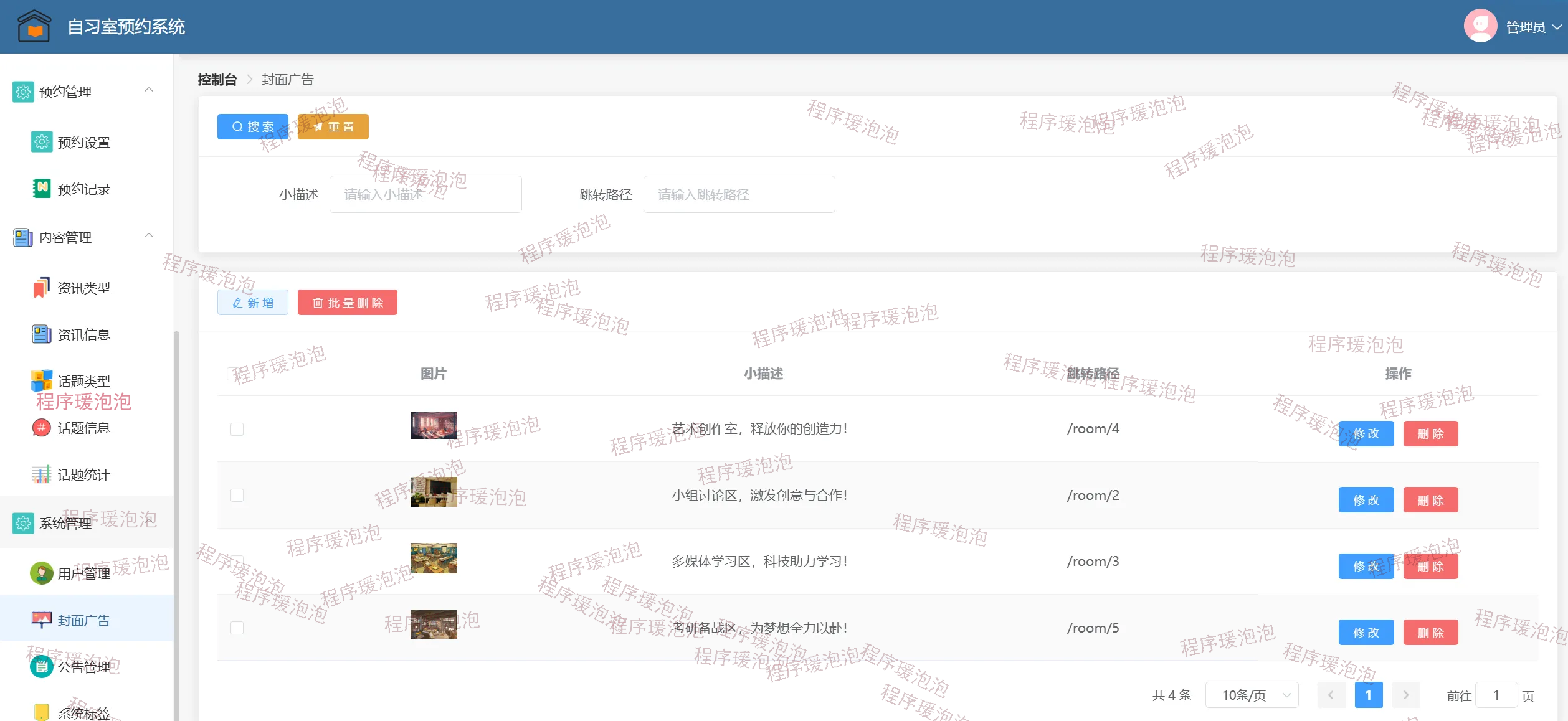 (13)管理封面广告:管理员管理系统的广告轮播图图片信息。