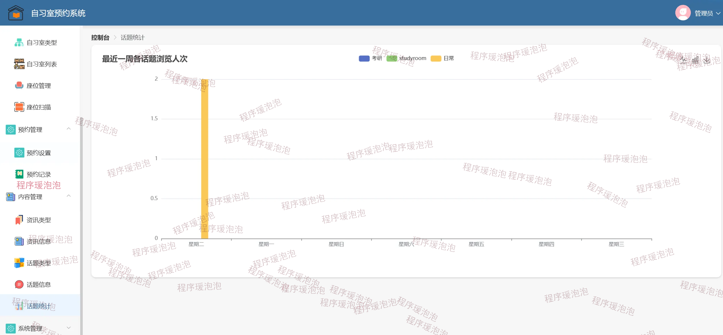 (10)查看话题统计:系统为管理员提供了近一周的话题浏览次数折线图。