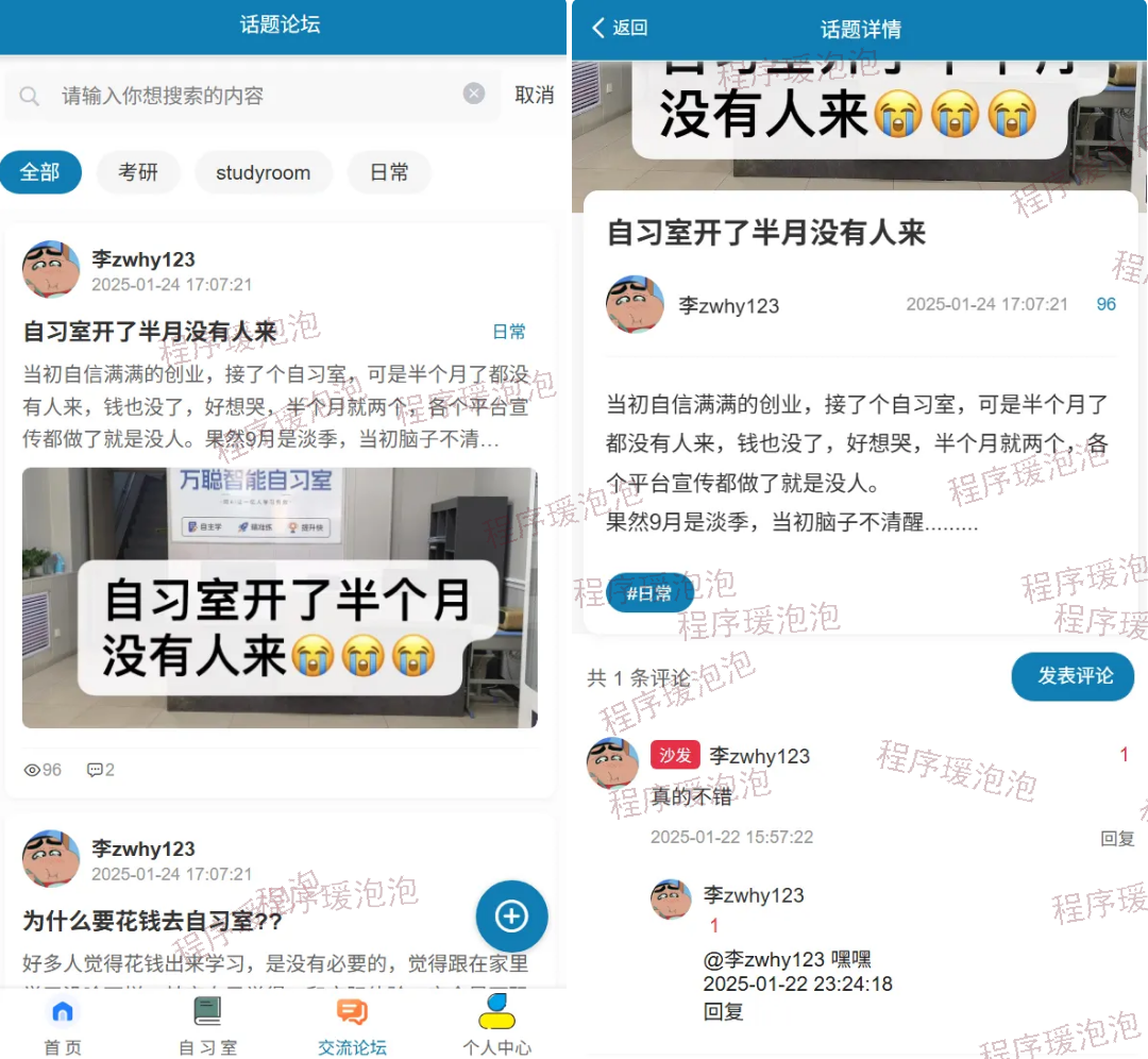 (7)论坛交流:用户可通过搜索进行筛选喜欢的话题,也可以进行自动浏览话题列表,可以在话题下发表自己的看法,与其他用户进行交流,对于他人的评价认同时,可以进行点赞他人评论信息。用户也可以进行发布话题。