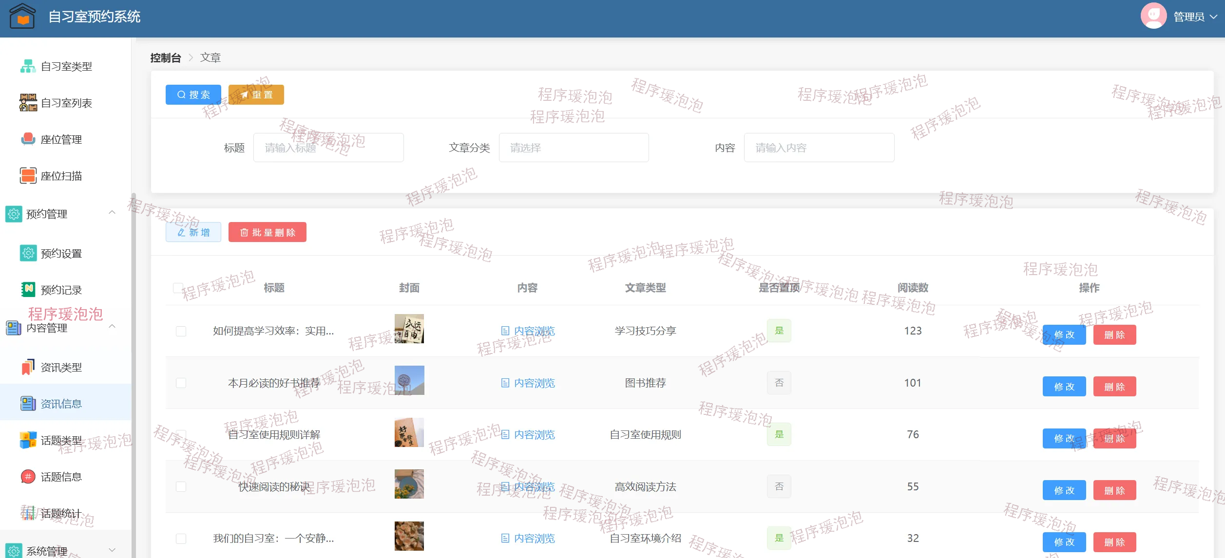 (16)管理资讯信息:管理员管理资讯信息,可将资讯进行置顶展示。