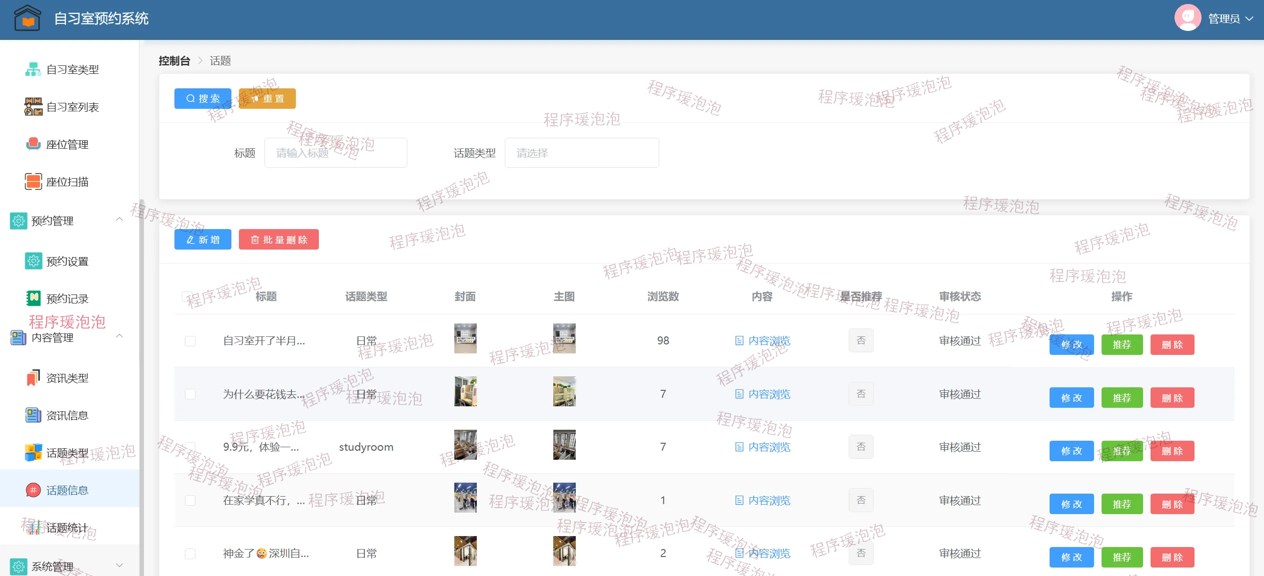 (9)管理话题类型:管理员可以维话题类型,进行增删改查操作。