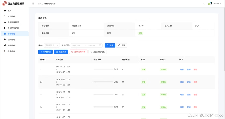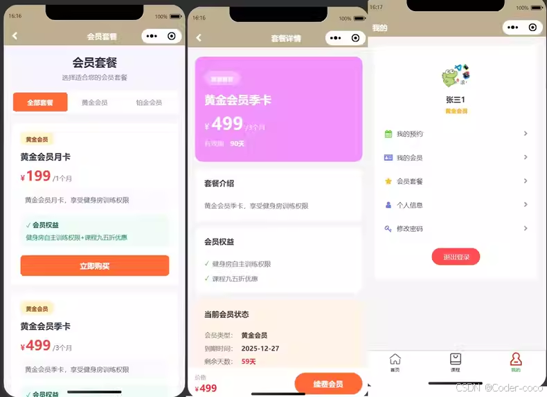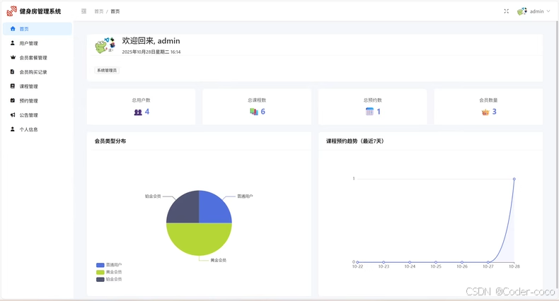 基于springboot + vue健身房预约小程序系统