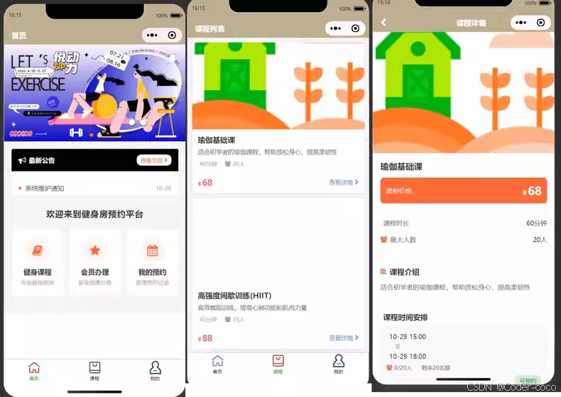 健身房预约小程序