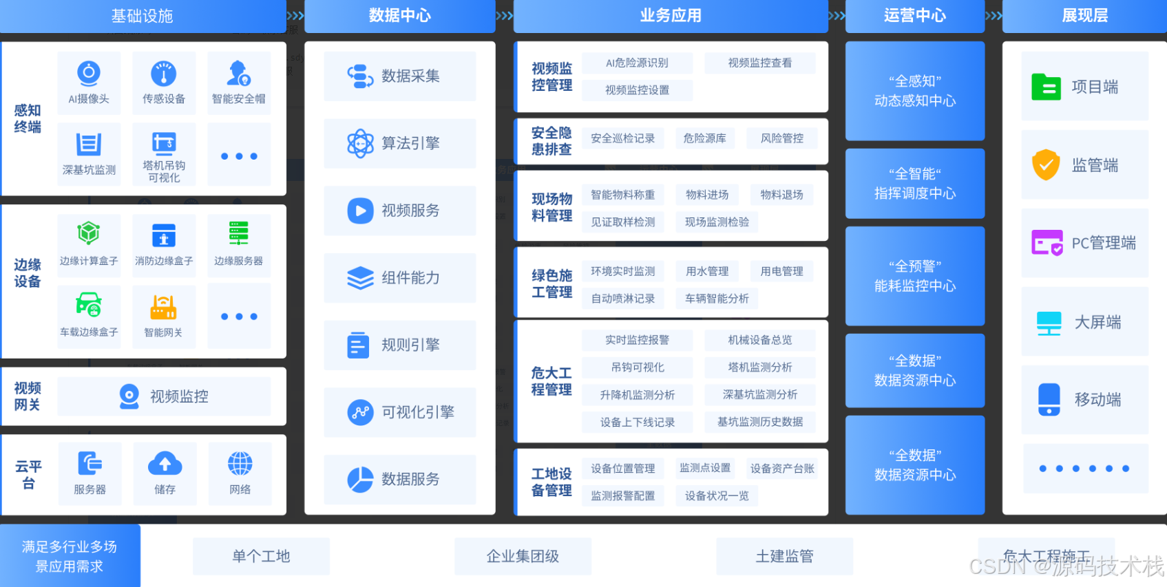 感知终端:AI摄像头、传感设备、智能安全帽、深基坑监测、塔机吊钩可视化、高支模、升降机