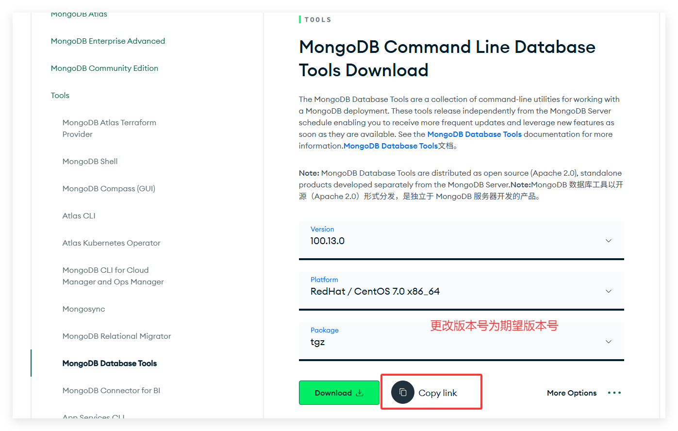 wget https://fastdl.mongodb.org/tools/db/mongodb-database-tools-rhel70-x86_64-100.5.4.tgz