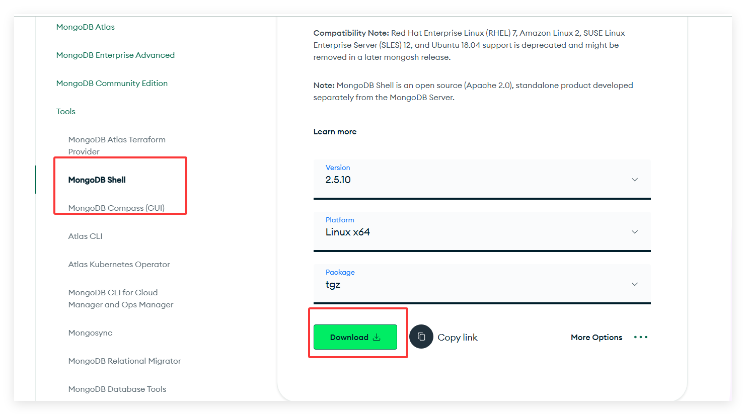 wget https://downloads.mongodb.com/compass/mongosh-2.5.10-linux-x64.tgz