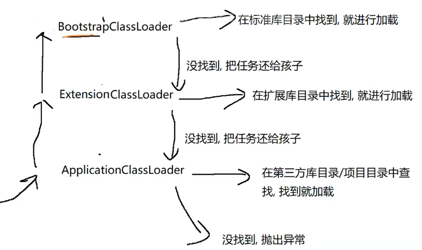 找到.class文件 根据类的全限定名(包名+类名 形如java.lang.String)打开文件 读取文件内容并存到内存里~