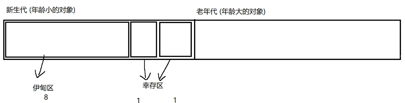 新创建的对象就放到"伊甸区" 绝大部分的伊甸区 都活不过第一轮GC