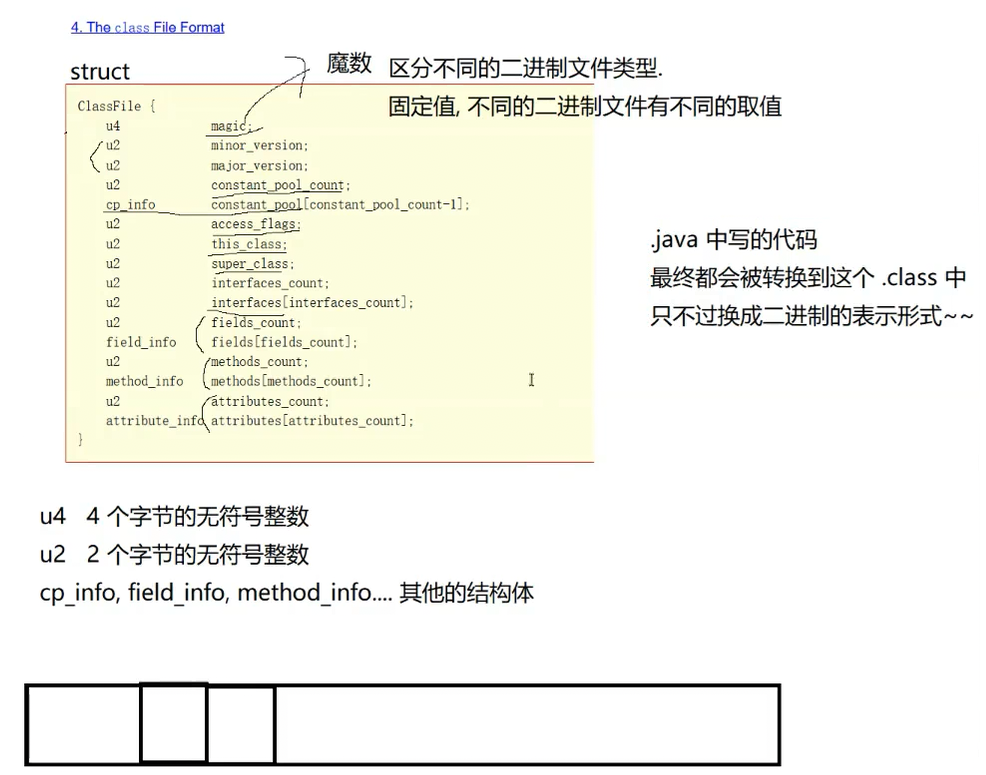 b)验证:解析,校验.class文件读到的内容是否是合法的 并把这里的内容转成 结构化的数据(.class文件 二进制文件 格式是有明确要求的)