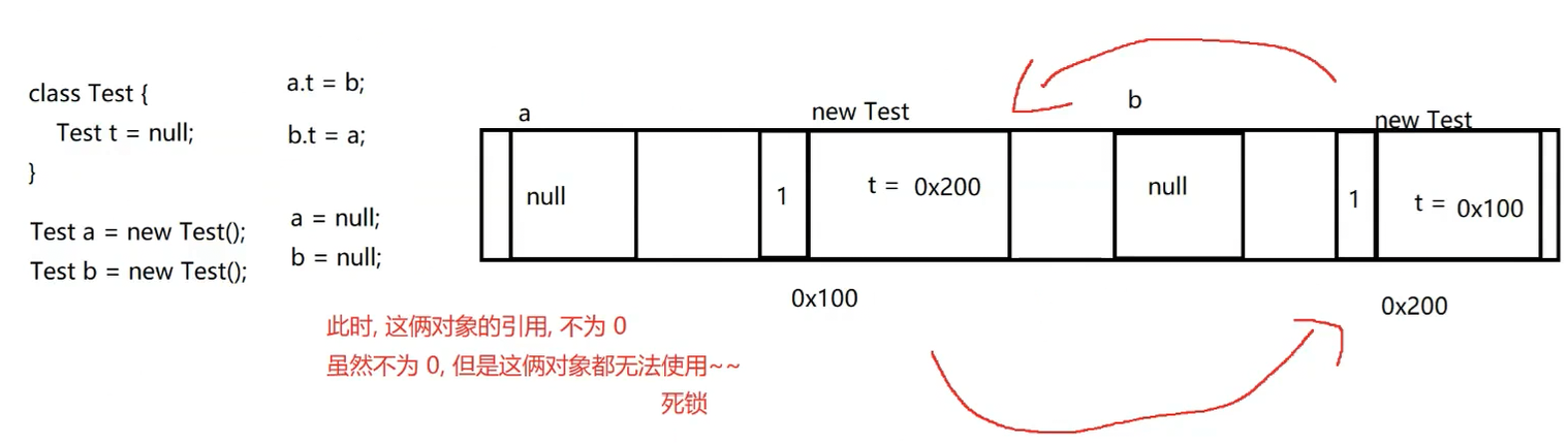 相当于死锁的那个情况 此时 ab这两个对象的引用不为0 虽然不为0 但是这两对象都无法使用