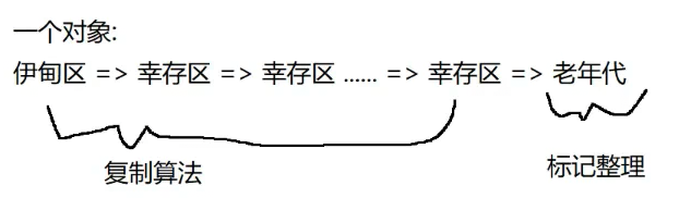 幸存区中的对象:也是要经历GC的扫描 每一轮GC都会消灭一大部分对象 剩余的对象再次通过复制算法 复制到另外一个幸存区
