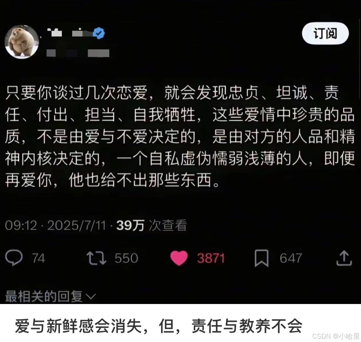 - 有人说,程序员的世界只有 0 和 1 的非黑即白。可我总觉得,理性的逻辑框架里,恰恰能生长出最笃定的浪漫 ------ 就像写代码时追求鲁棒性与可扩展性,对待感情,我也向往稳定、长久且共同成长的关系。