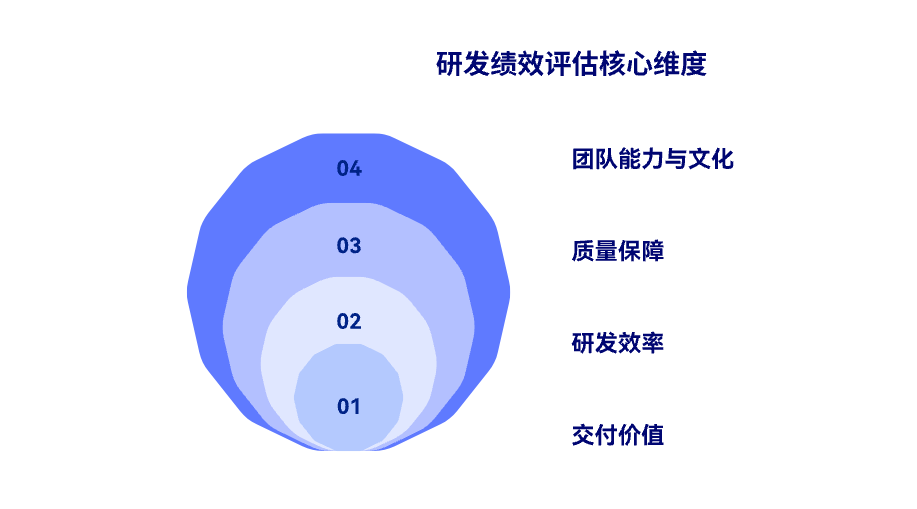 研发(R&D)绩效评估是企业管理中的一个复杂难题,它试图量化一个本质上充满创造性、探索性和不确定性的过程。要准确评估研发绩效,关键指标应超越传统的"代码行数"或"工时",转向一个多维度的框架,核心关注交付价值、研发效率、质量保障以及团队能力与文化。 这些指标共同构成了衡量研发团队能否持续、高效地产出商业价值的完整图景。