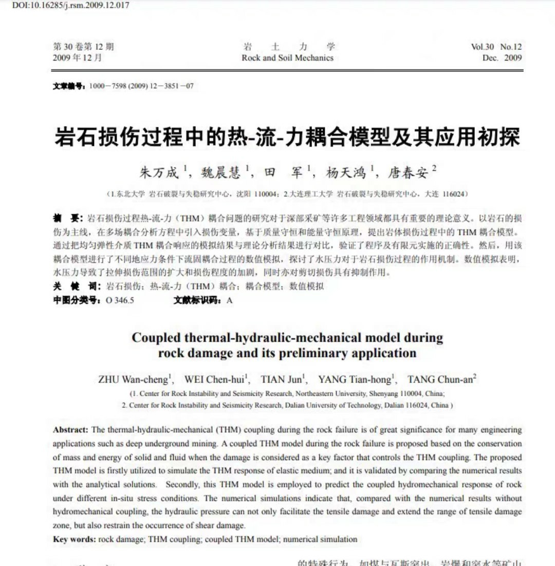 岩石在地下往往承受着温度、压力以及水流等多种因素的作用。例如在深部地热开采过程中,高温的热水注入地下,使得岩石周围的温度场发生变化,进而引起热应力。同时,孔隙水压力的改变也会对岩石的力学性能产生影响,这些因素相互耦合,导致岩石发生损伤。