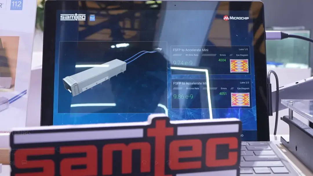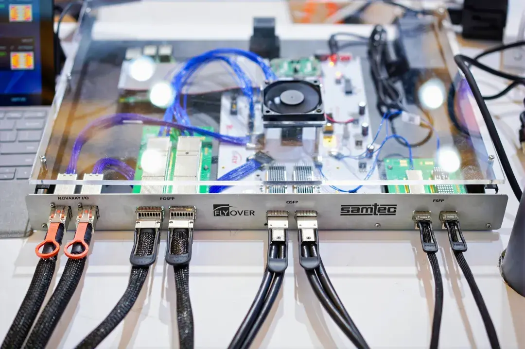 本次演示,来自于展会现场的前面板解决方案Demo,呈现Samtec Flyover® Cable System的优越性能。
