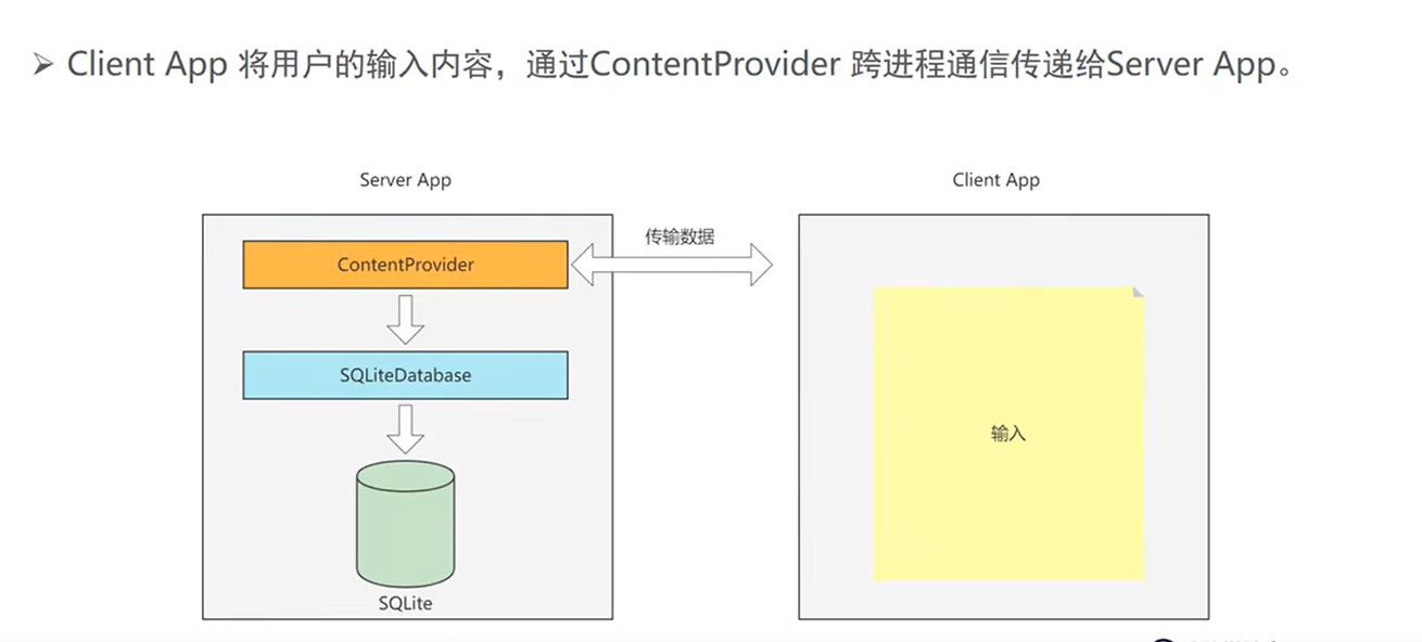 ContentResolver(Android 提供的客户端访问接口)来调用 Server App 的ContentProvider; -