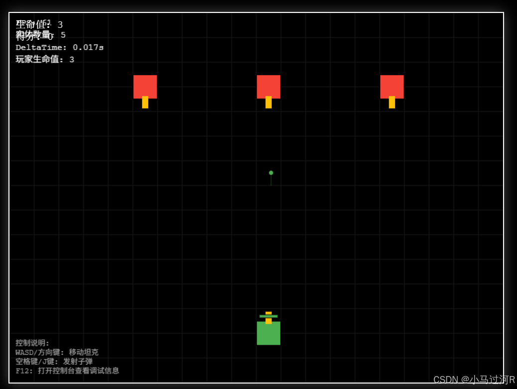 我们使用浏览器打开项目,如下方向控制OK,发射子弹也OK。一个简单的坦克大战demo已经完成。