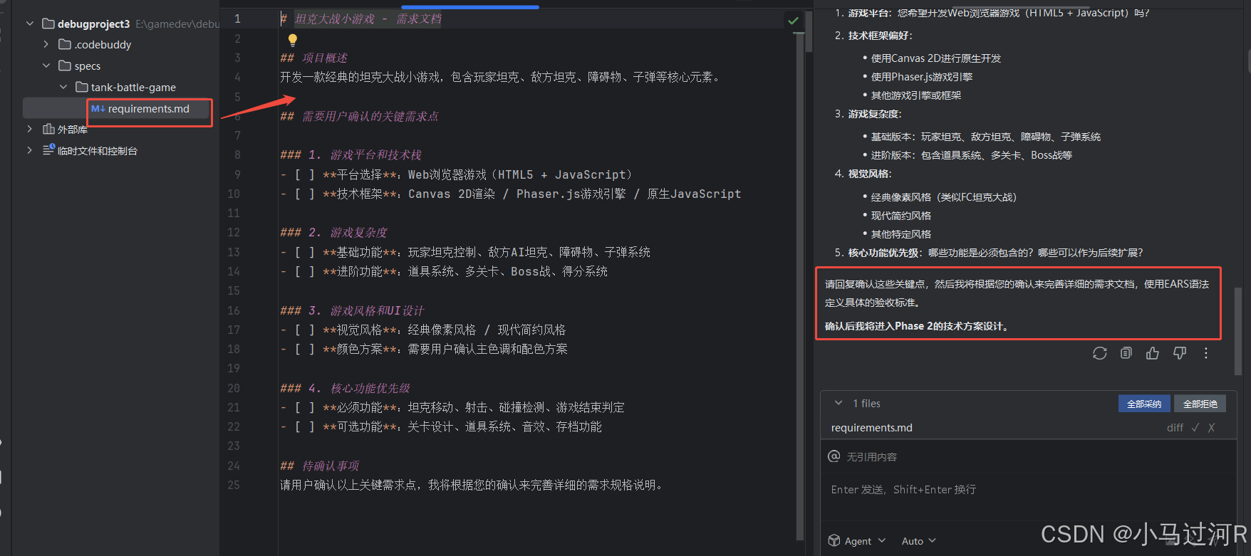 我们在Codebuddy对话框内输入需求,你也可以称为"模糊需求"。