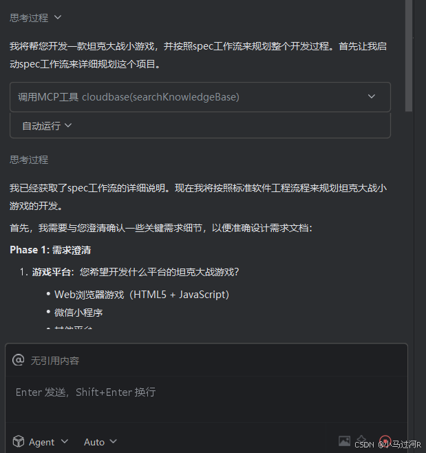 我们以CloudBase MCP方式来尝试开发一款经典的坦克大战小游戏。我们来沉浸式体验一下基于spec的开发过程。