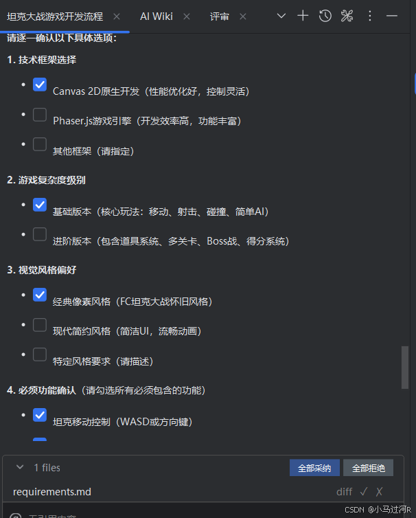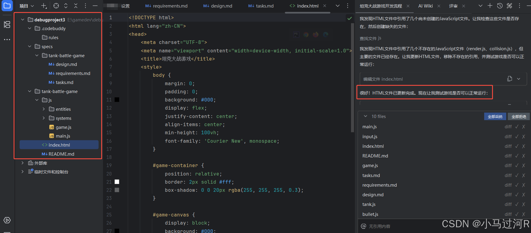 至此AI编码基于Spec工作流开发的坦克大战小游戏就完成了,我们体验了整个流程的开发。基于Spec的AI编码辅助,确实可以解决AI抽盲盒的困境,将软件开发周期流程拆解,人工与AI交互并干预到每一步的确认,确保生成的代码可控。