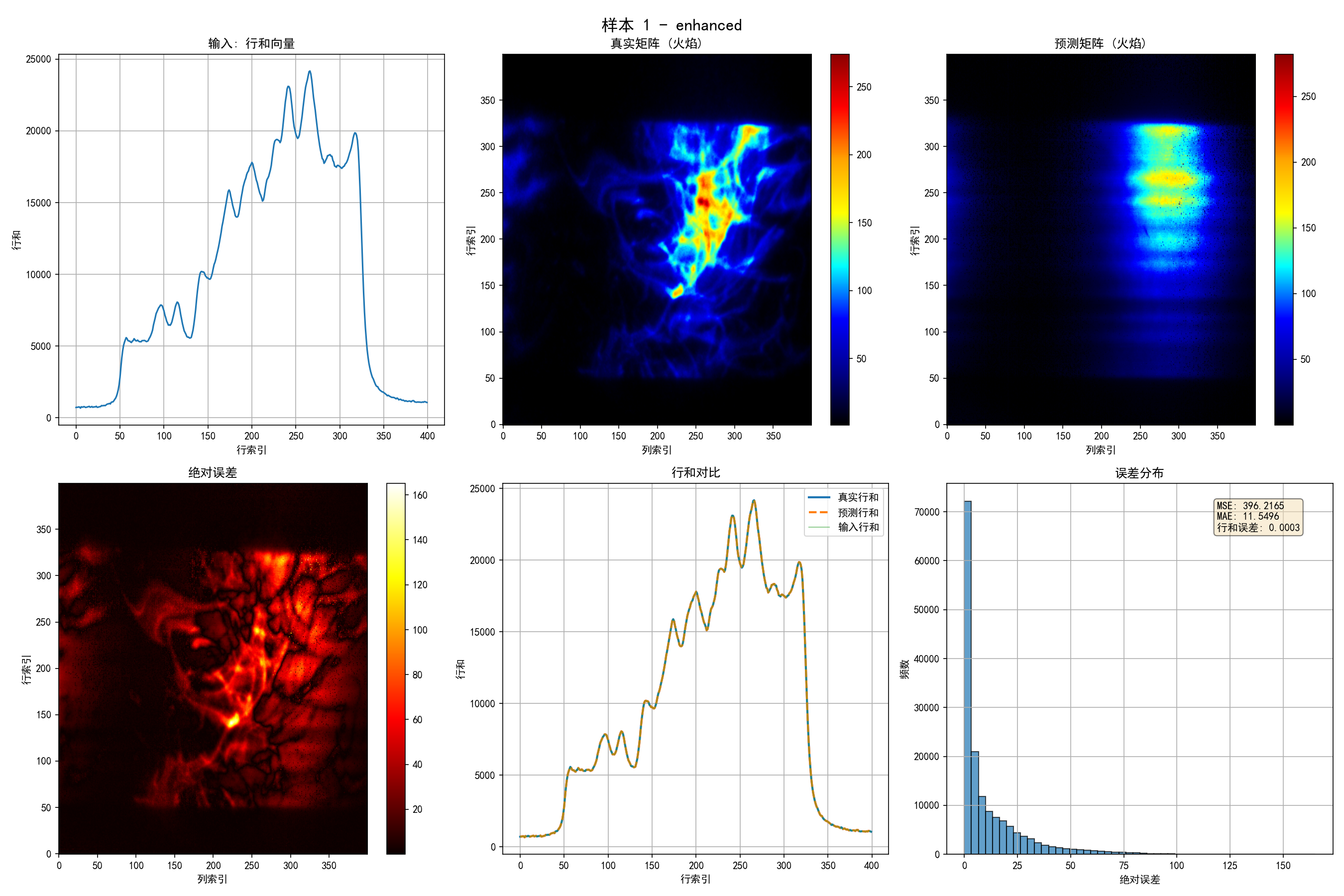 本项目成功实现了从400维行和向量到400×400火焰矩阵的端到端预测,核心创新包括: