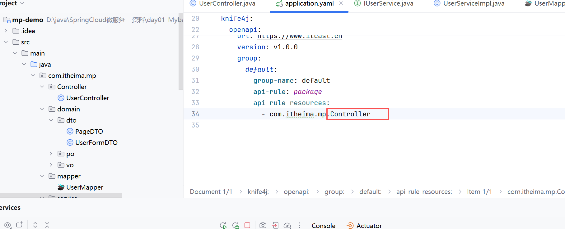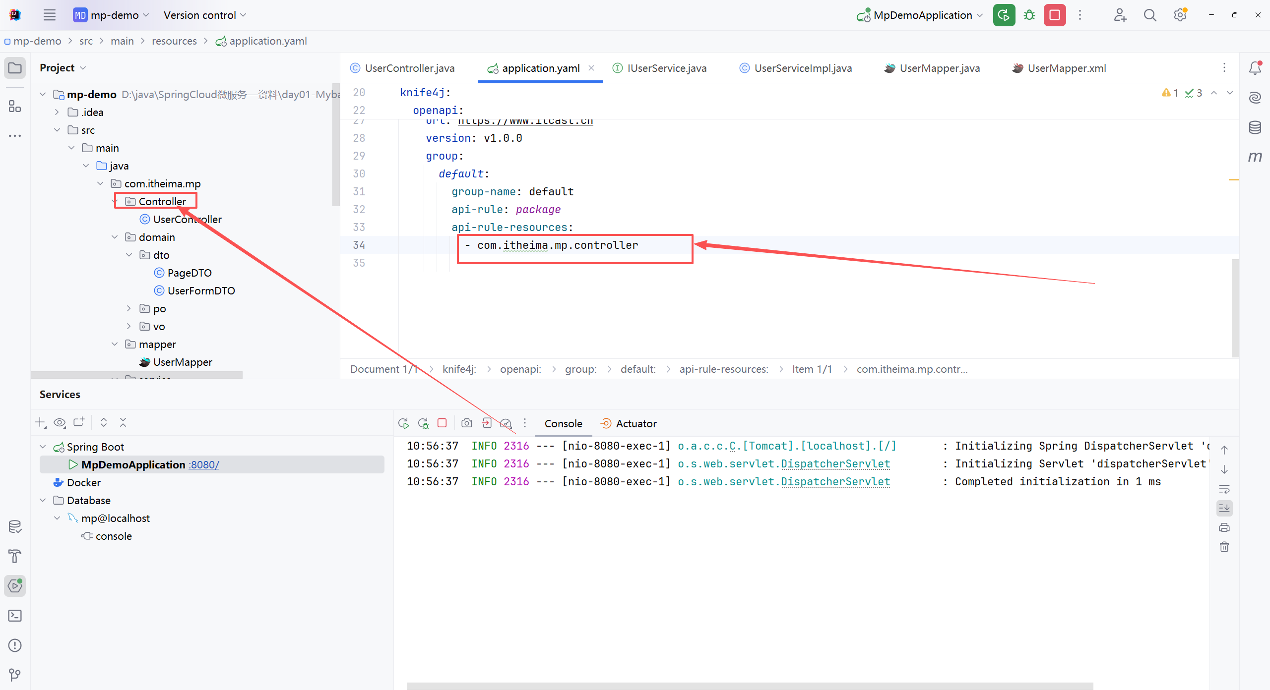 经过检查发现,是我的配置这里不太一样,我在yaml文件中的配置是直接在网课资料里面复制粘贴的,而我创建controller类的时候,我采用的是大写的方式,这就导致很不一样。改过来之后,就可以正常显示了。