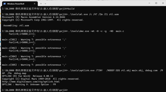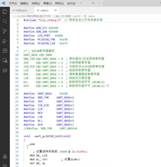 1.例程功能:串口中断接收(触发8259的IR1中断),8253时钟芯片,定时触发8259的IR0中断,8255数码管的动态显示。