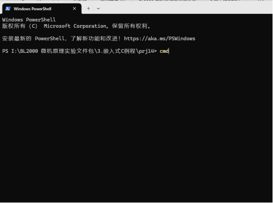 4.2 键入cmd,切换到命令行模式(因为默认是powershell模式)