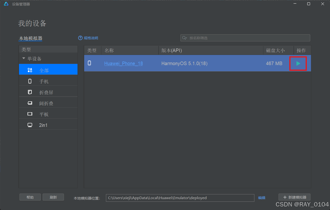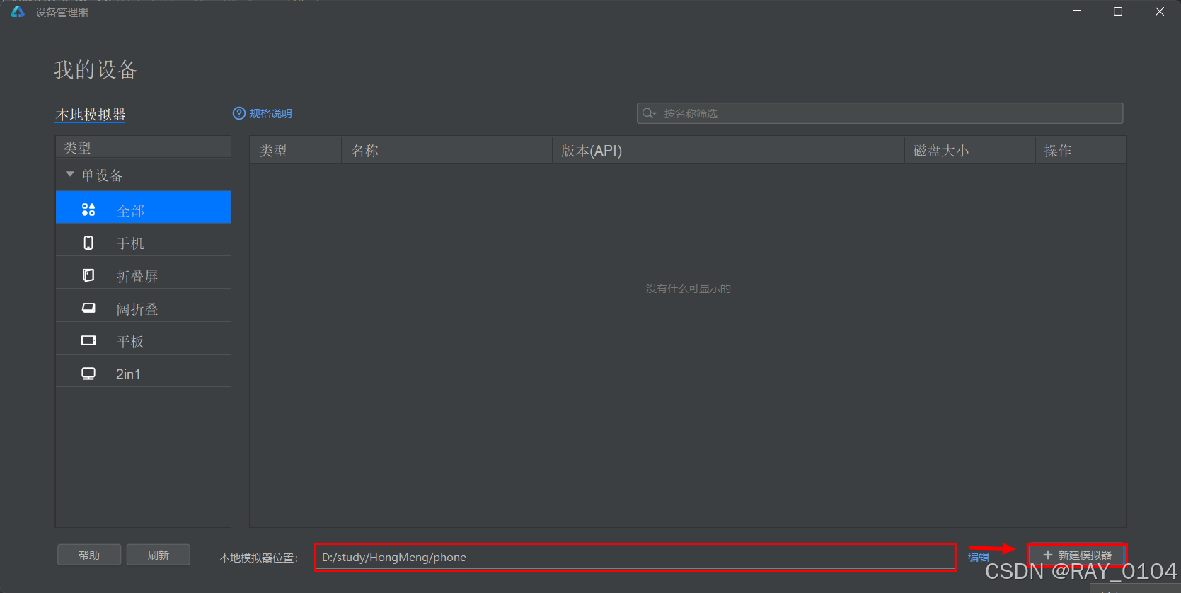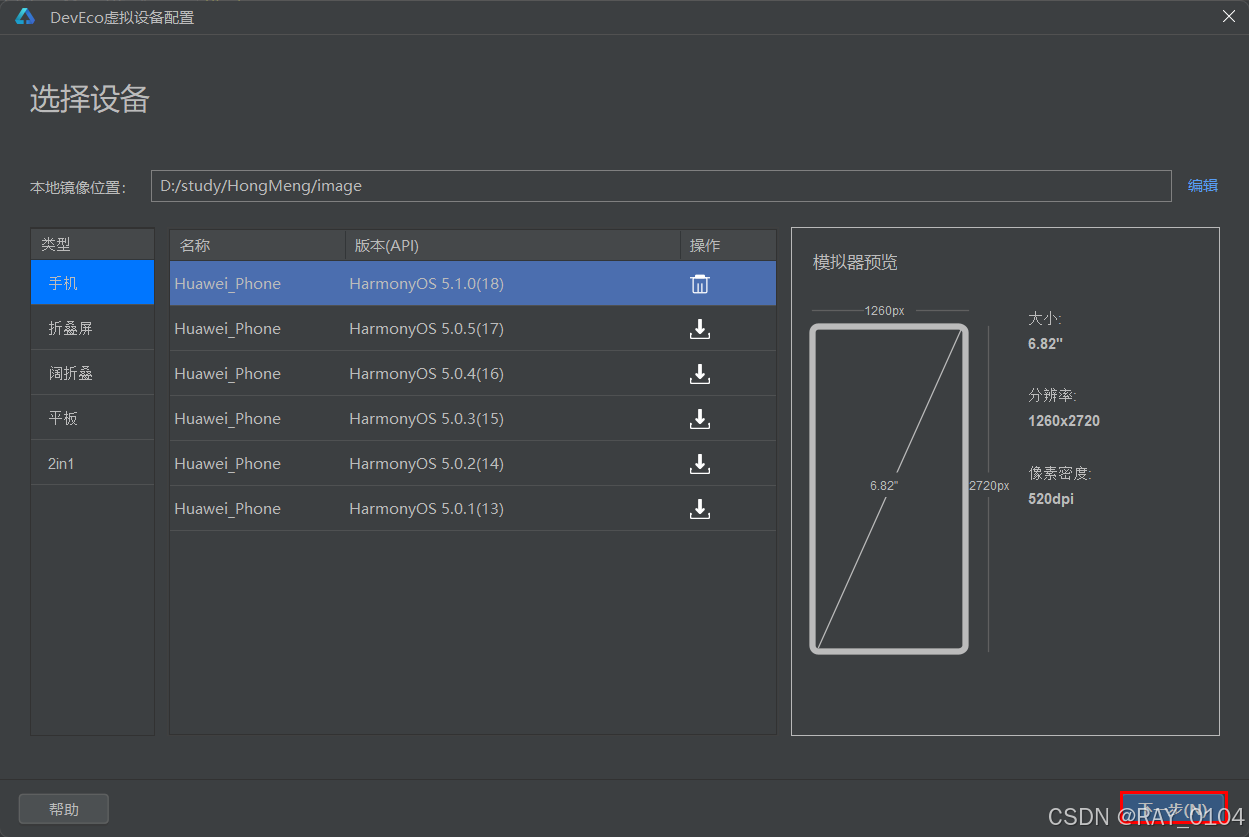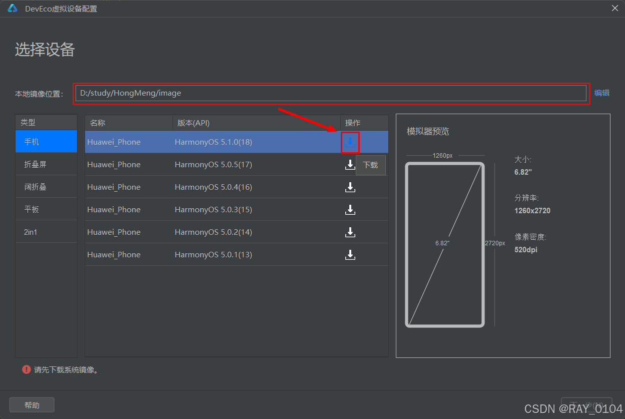 创建模拟器前需要镜像,选择镜像下载的位置与不同类型的镜像