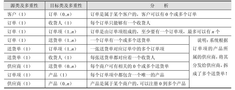 很显然,在这个例子中,这个类就是"订单"。然后,我们逐一地分析该类与其他类之间的关系。
