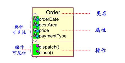 如图所示,类是用一个矩形表示的,它包含三个分栏,每个分栏分别写入类的名称、类的属性和类的操作。