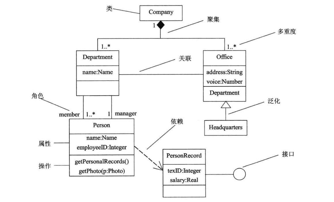 通过以上的分析,我们就能够正确地理解出这张类图所表示的信息,那么当我们向非技术背景的用户解释这张类图时,就不应该出现诸如聚合、泛化、关联之类的术语,而是应该读作: