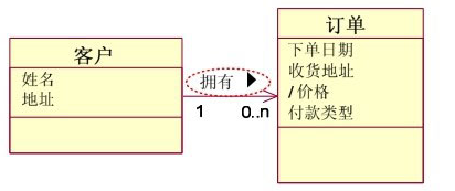 通过使用这些角色名称,可以使得类之间的关联关系更加的清晰化。但用来表示"客户"是"订单"所有者的标注就有"画蛇添足"之嫌。