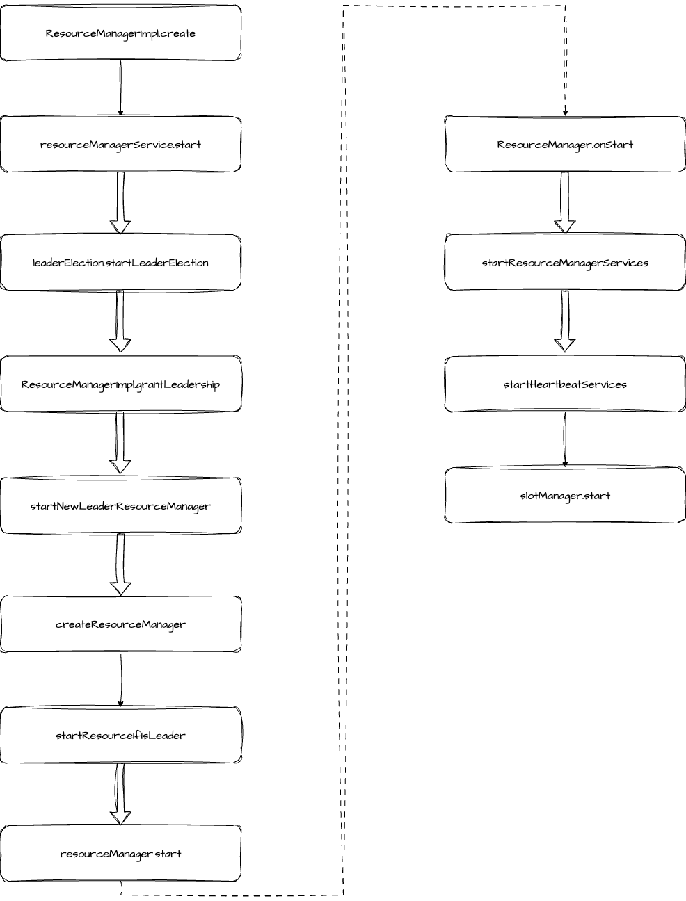 成为 leader 后,就会调用 startNewLeaderResourceManager 方法,这个方法中会调用 resourceManagerFactory.createResourceManager 正式创建 resourceManager。创建完成后,就会调用 resourceManager.start 来启动它。