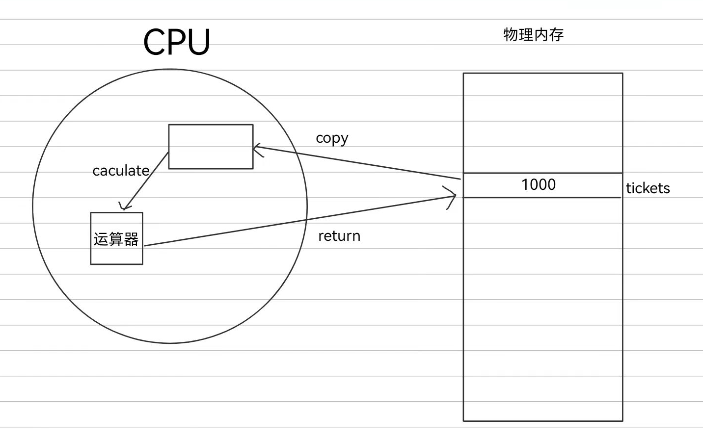 隐藏问题:线程切换前保存的tickets在下次再次被调度的时候不会再次获取内存中的tickets,而是直接使用之前保存的,这会导致多线程并发时,tickets并不同步