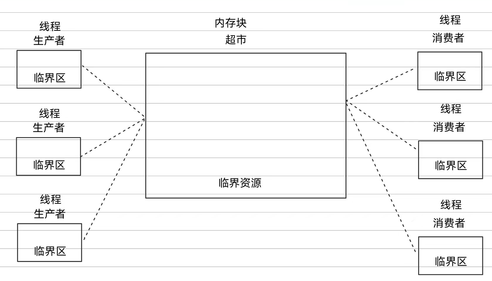 其实上面的代码也顺便实现了该模型,因为他只有一把锁,所以不仅生产者和消费者之间的互斥关系满足了,生产者之间和消费者之间的互斥关系也满足了