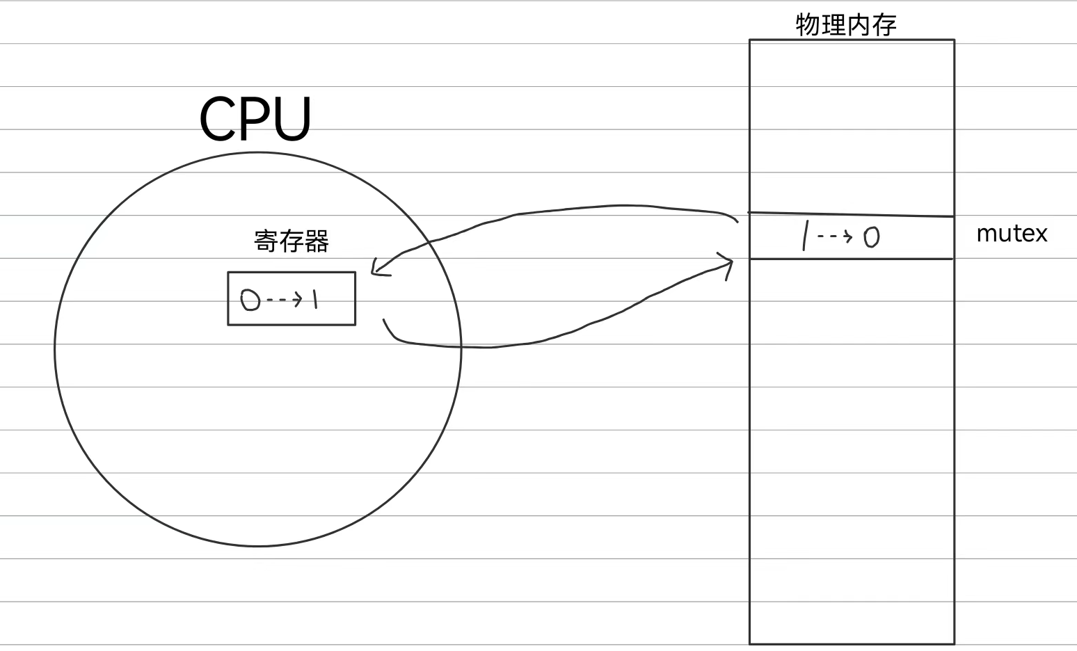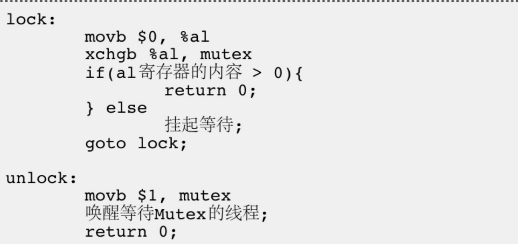 1.将0值交给cpu中保存mutex变量值的寄存器