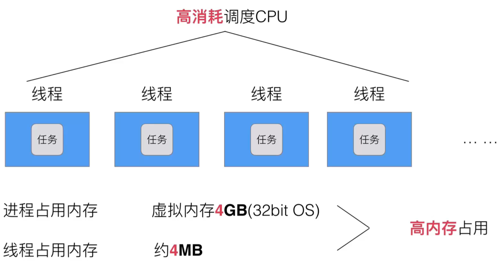 传统的时间片轮转对线程的调度,CPU切换会消耗大量成本,甚至在线程数量很多的情况下,CPU切换的时间高于线程的执行时间。