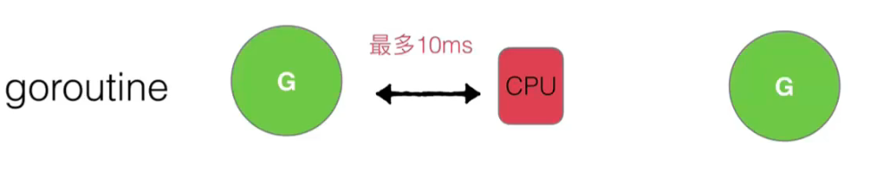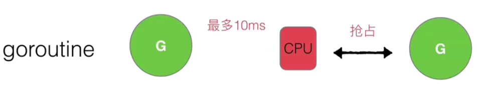 对于每个 G,CPU 最多等待执行 10ms,时间到了,另外的 G 就会抢占 CPU: