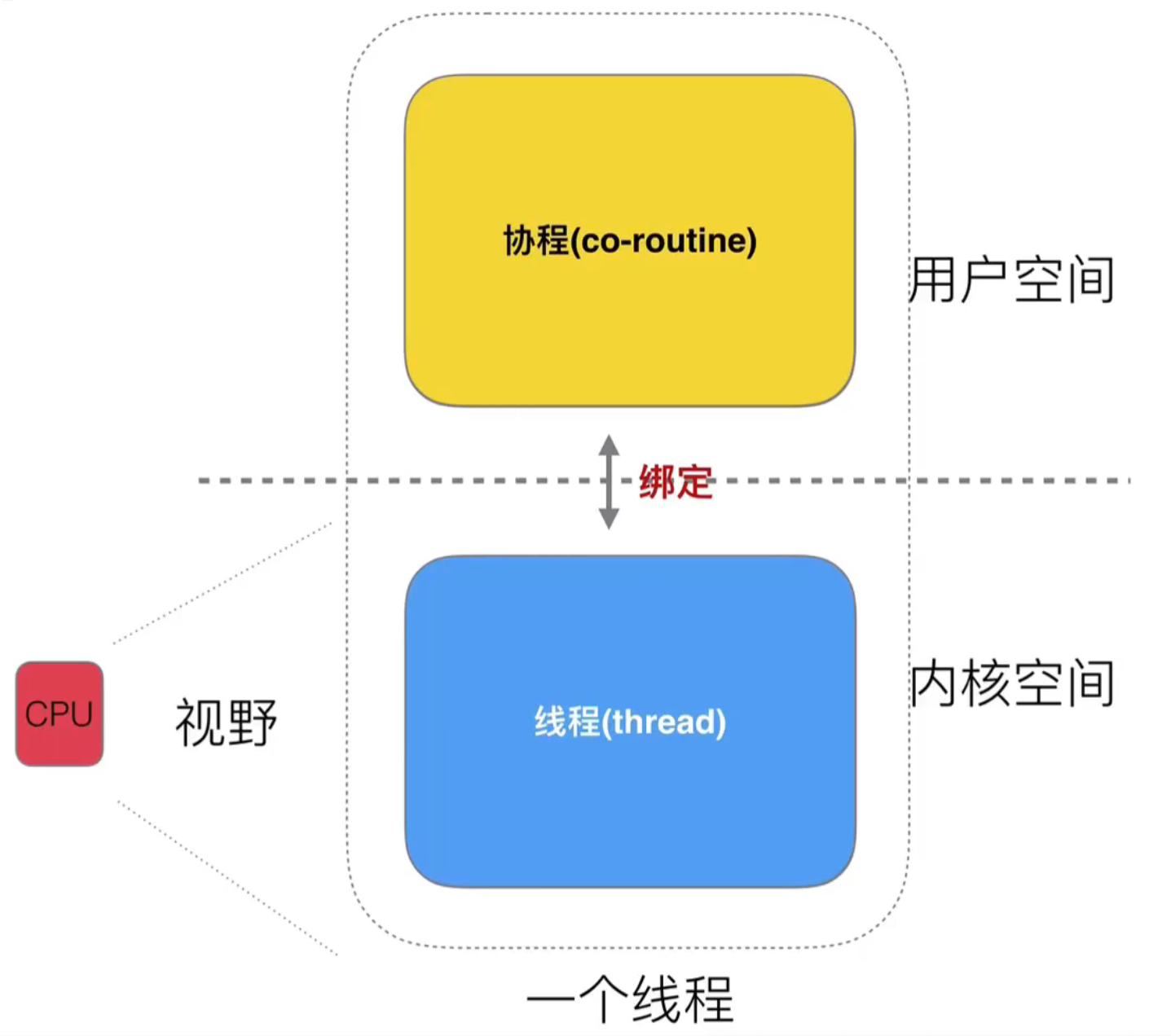 将线程分为内核态和用户态,CPU 本身是无感的,从 CPU 的角度看去,还是认为自己处理的是整个线程(包括内核态和用户态)