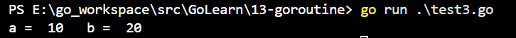 注意:不能直接接收 go func(a int, b int) bool 的返回值,因为这个goroutine 与 主goroutine 都是并行的。