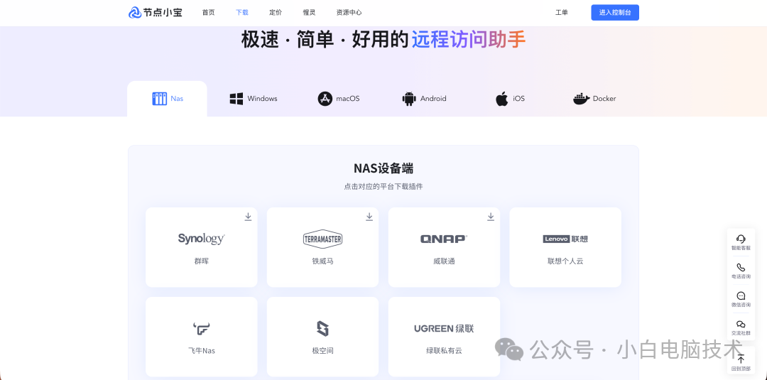 节点小宝支持Windows、macOS、Linux等桌面平台,移动端支持安卓、苹果等手机和平板设备,在NAS支持多款品牌直接安装。安装完成之后,在这些已经安装节点小宝的设备上登录同个账号即可访问。(文末【推荐阅读】处有详细教程。)