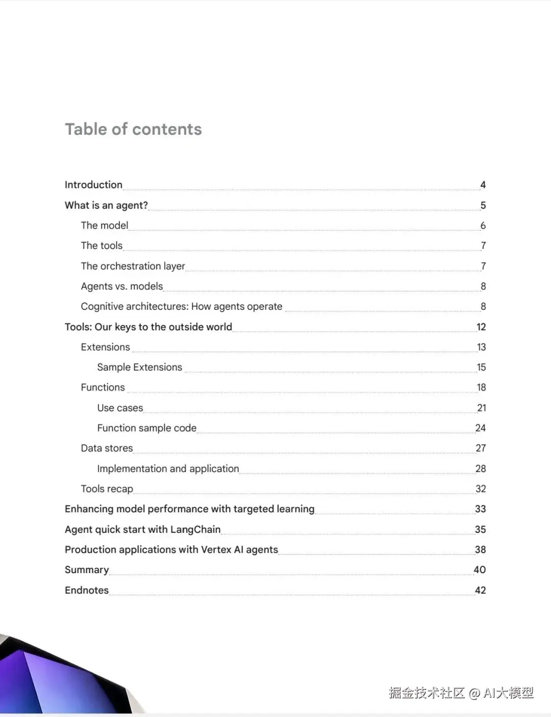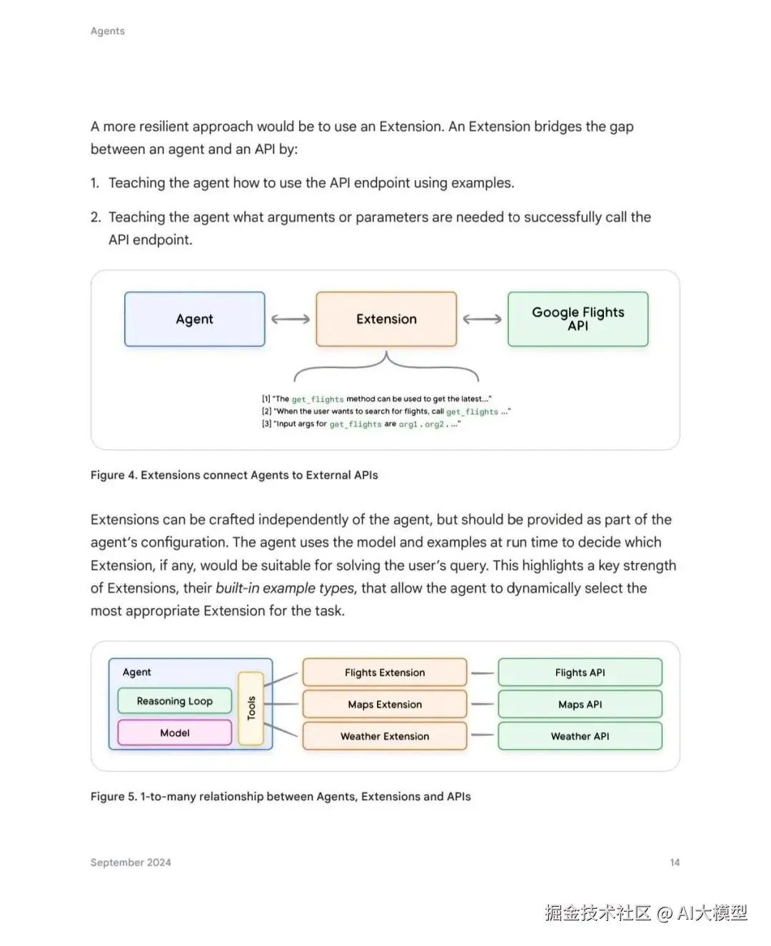 工具类型:Google的Agents能够与三种主要工具类型互动:Extensions、Functions和Data Stores。它们分别扮演着不同的角色,比如Extensions像桥梁一样连接API和Agent,Functions在客户端执行特定任务,而Data Stores则提供动态、实时的数据支持!