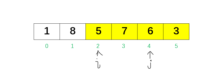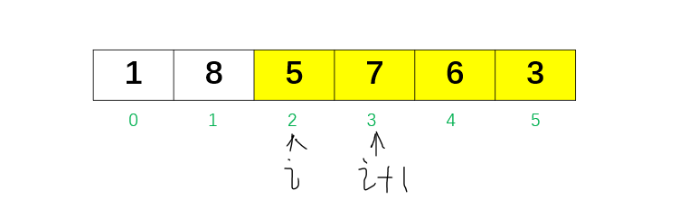 从后往前找到 j = 4,比 5 大的最小元素是 6,此时,交换 i 与 j 位置的数字nums[i] 和 nums[j],得到 [1, 8, 6, 7, 5, 3]。