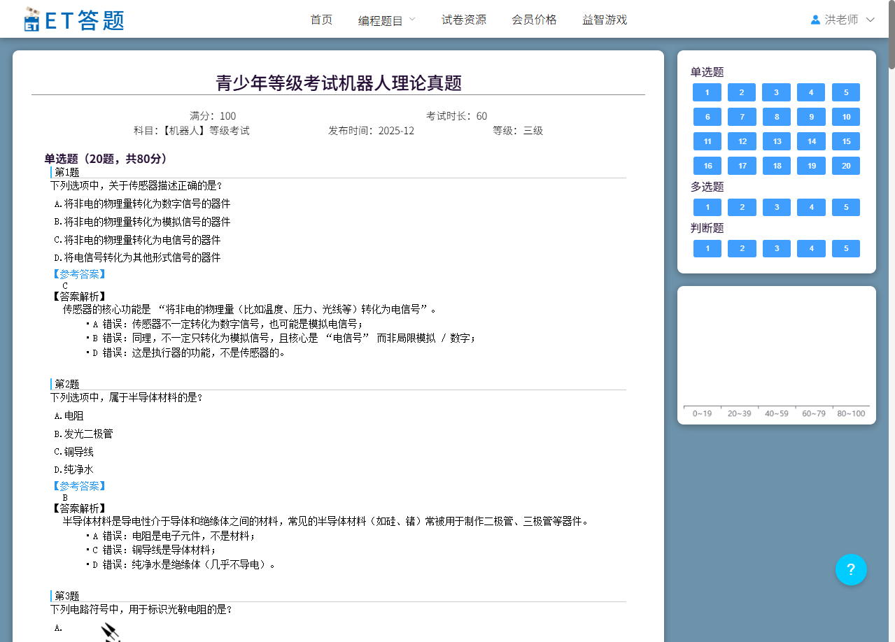 2512 青少年等级考试机器人理论真题