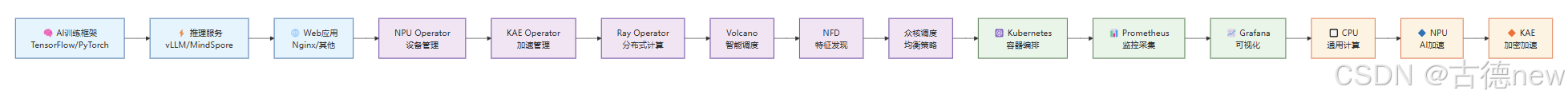 · *统一资源池化* :将CPU、NPU、KAE等异构硬件资源纳入统一管理体系 · *智能调度引擎* :基于应用特性和硬件能力的智能匹配,最大化资源利用效率 · *自动化运维* :通过Operator模式实现硬件的自动发现、配置和生命周期管理 · *开放生态体系*:为硬件厂商、平台开发者、应用开发者提供标准化接口
