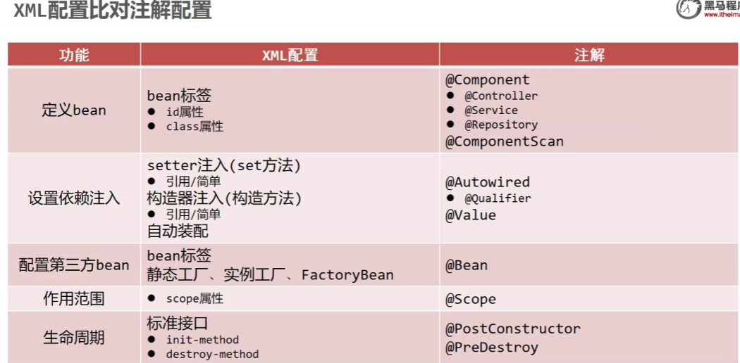 依赖自动装配(按类型装配,按名称装配,构造器):IoC根据bean所依赖的资源在容器中自动查找并注入到bean中的过程称为自动装配。 @Authwired解决引用类型注入@Qualifier指定注入的bean的id@Value注入简单类型@PropertySource注入外部文件