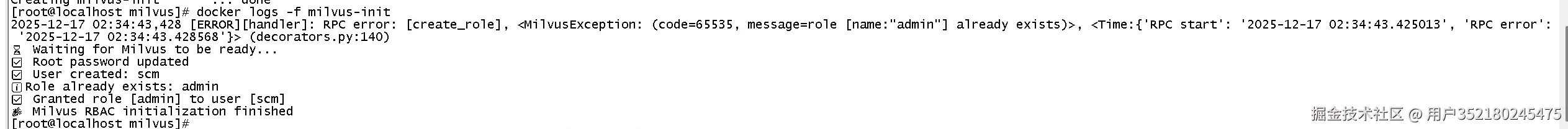 milvus-init 容器执行后退出,具体的执行日志如下: