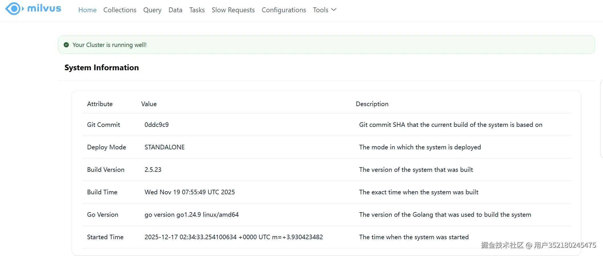 Milvus 的webui管理端,注意这个管理端没有账号与密码,能直接访问
