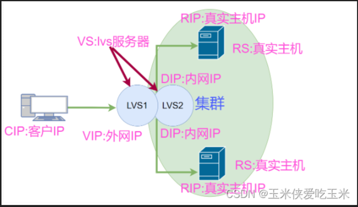 - VIP:Virtual serve IP,代理服务器的外网ip,LVS对外接收用户请求的IP